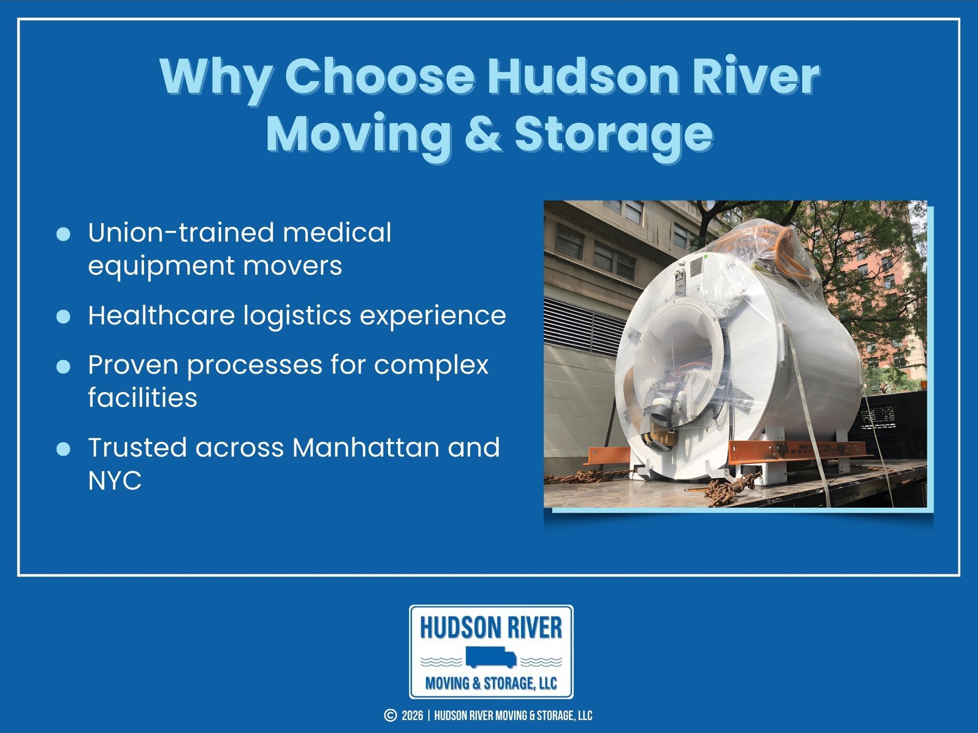 Even small oversights, such as placing equipment in the wrong room or omitting calibration steps, can lead to compliance issues or affect patient safety. That’s why healthcare facilities in Manhattan trust experienced partners like Hudson River Moving & Storage.